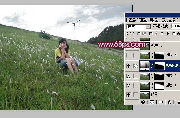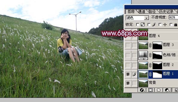 1、打開原圖素材,按ctrl + j把背景圖層復制一層,圖層混合模式改為“濾色”,加上圖層蒙版用黑色畫筆把天空部分擦出來,如圖1。