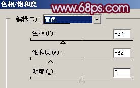 6、創建色相/飽和度調整圖層,參數設置如圖11,12,效果如圖13。