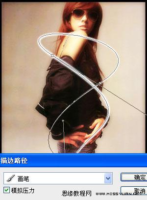 9、創建新圖層,選擇鋼筆工具,打開路徑面板,右鍵點擊步驟 7所建路經選擇“描邊路徑”。