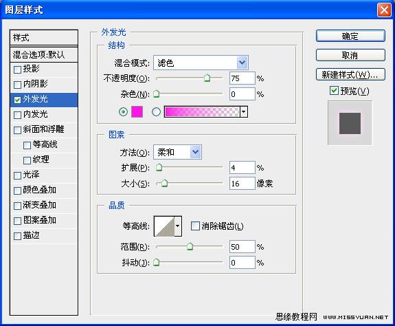 12、按下enter刪除路徑,為圖層添加外發光效果。