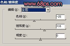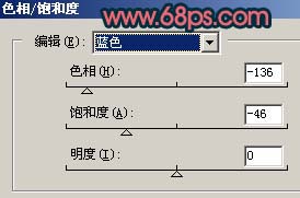 11、創建色相/飽和度調整圖層,參數設置如圖20,效果如圖21。