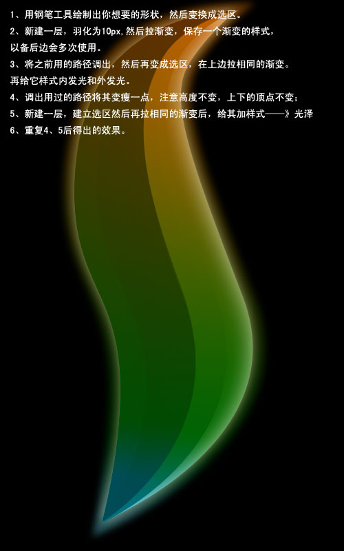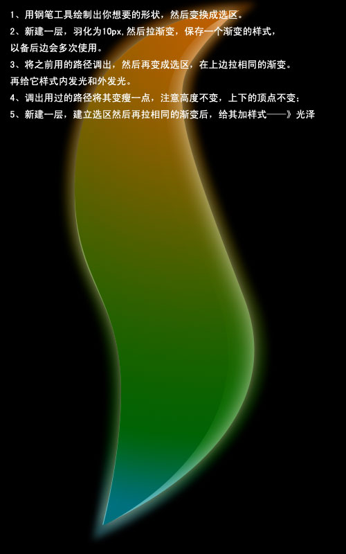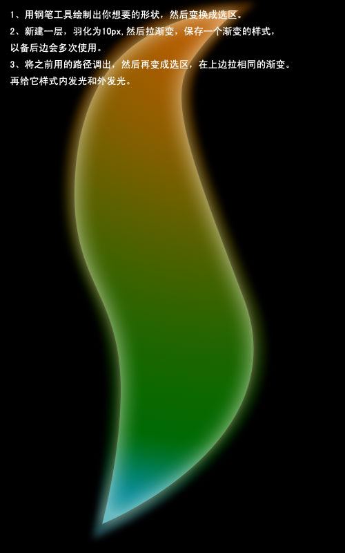 3、將之前用的路徑調出,然后再變換成選區,在上邊拉相同的漸變,再調出圖層樣式,適當加點內發光和外發光,數值自己把握。