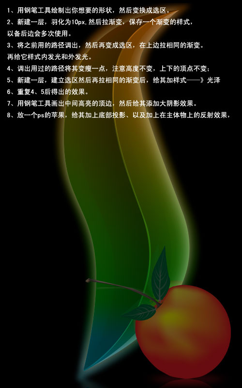 8、然后方一個ps蘋果,給其加上底部投影,以及加上在主題物體上的反射效果,完成最終效果。