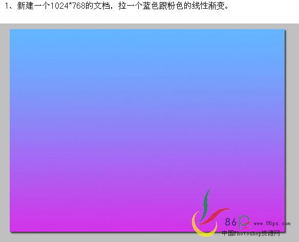 1、新建一個1024 * 768的文檔,拉一個藍色到粉色的線性漸變。