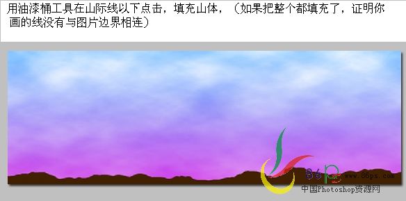 5、新建一個圖層,選擇鉛筆工具,前景設為深棕色,畫一個大概的山脊線。