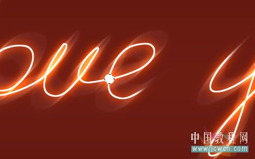 18、合并所有心形圖層,放大圖像,用橡皮擦工具仔細擦出文字和心形交叉的地方,在文字穿過心的地方小心地有用小畫筆,用心型圖邊緣的紅色繪一個小圓圈。如圖。