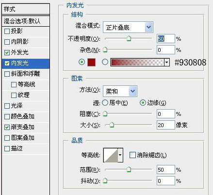 14、再雙擊圖層,調(diào)出圖層樣式,設(shè)置如下。