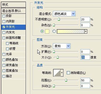 7、還是在文字層,雙擊圖層調(diào)出圖層樣式,勾選外發(fā)光樣式。