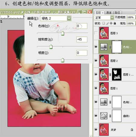 6、創建色相/飽和度調整圖層,降低綠色飽和度,參數設置如下圖。