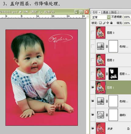 3、新建一個圖層,按ctrl + alt + shift + e蓋印圖層,適當對人物做降噪處理。
