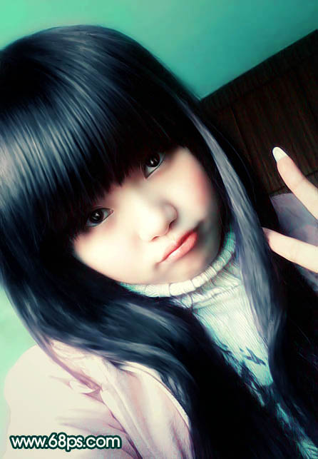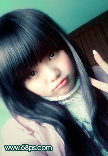 3、新建一個圖層,圖層混合模式改為“顏色”,把前景顏色設置為:#aafbf0,用畫筆涂抹墻壁部分,給白墻上色,效果如圖4。