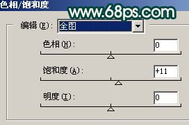 7、創建色相/飽和度調整圖層,參數設置如圖10,11,效果如圖12。