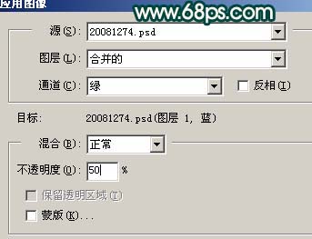 1、打開原圖素材,按ctrl + j把背景圖層復制一層,點通道面板,選擇藍色通道,執行:圖像 > 應用圖像,參數設置如圖1,效果如圖2。
