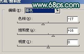 9、創建色相/飽和度調整圖層,參數設置如圖15,16,效果如圖17。