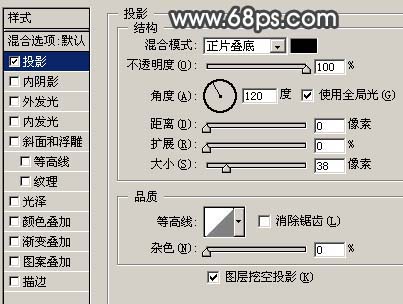 13、雙擊圖層調出圖層樣式,加上投影,參數設置如圖19,效果如圖20。