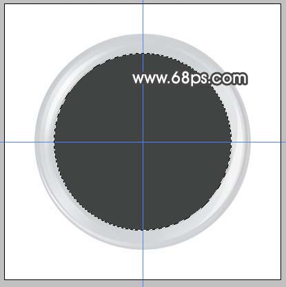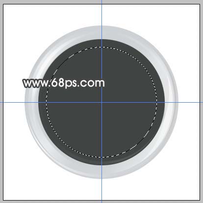 5、新建一個圖層,選擇橢圓選框工具以交點為中心拉一個稍小的正圓,如圖7所示,填充顏色:#424343。