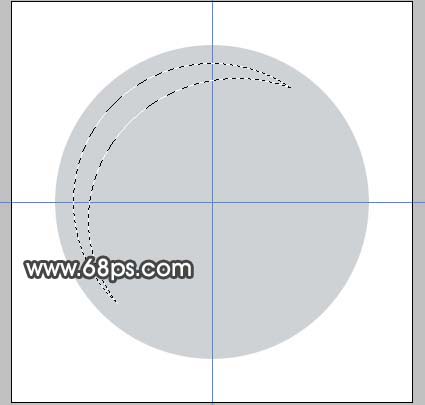 2、新建一個圖層,選擇橢圓選框工具,以交點為中心拉一個圖2所示的正圓,填充顏色:#cfd2d4,如圖2。