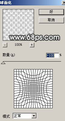 9、回到剛才操作的文件,新建一個圖層,選擇菜單:編輯 > 填充,選擇剛才定義的圖案,確定后按ctrl + i反相,再執行:濾鏡 > 扭曲 > 球面化,參數設置如圖12,確定后加上圖層蒙版,擦出多余部分,再把圖層不透明度改為:20%,效果如圖13。