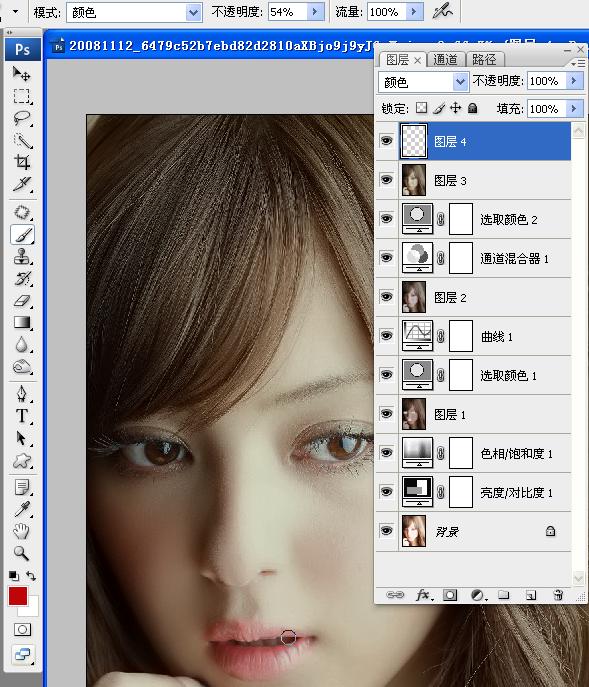 8.計(jì)算參數(shù)如圖..按住ctrl點(diǎn)擊alpha通道出現(xiàn)警告圖標(biāo)..返回圖層..新建一個(gè)圖層..為嘴上點(diǎn)顏色