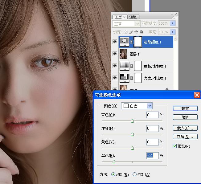 3新建可選顏色調(diào)整層參數(shù)如圖