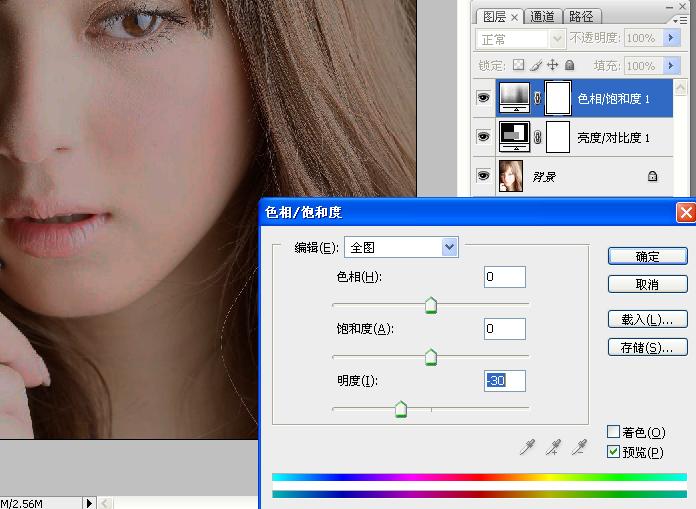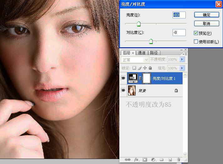 新建亮度對(duì)比度調(diào)整層.參數(shù)如圖