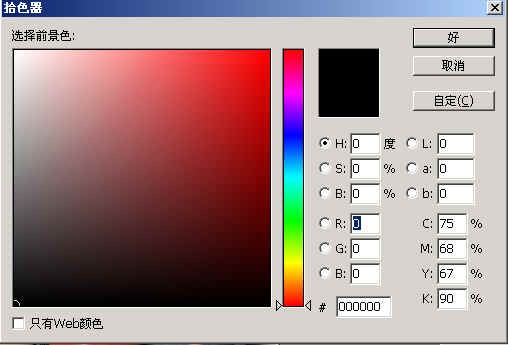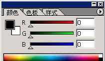 現在到窗口菜單下點“顏色”,出來一個顏色面板。在顏色兩字的下面,有二個方的色塊。前面黑色的是前景色,后面白色的是背景色。你需要設置前景色時(多數情況下我們是設置前景色),就點前面那塊。現在我們按下前景色按鈕。黑色的方塊的外面多了一個外框,表示現在是設置前景色。