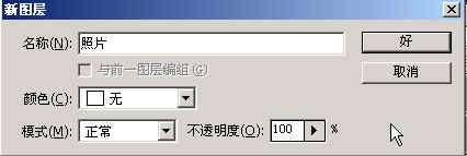 2、 為背景層改名。 在圖層面板,現在有一個圖層名為“背景”。這個背景層的右邊有一個小鎖。凡是第一次打開一個圖片總是有這樣一個上了鎖的背景層。現在我們要改變它的名稱。雙擊背景層,彈出一個對話框。在名稱中寫上“照片”后按“好”字。