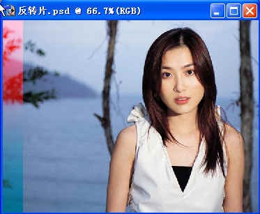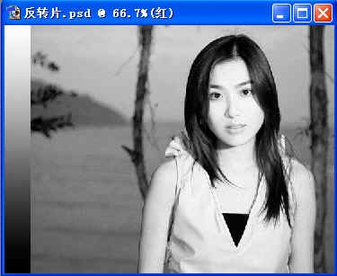 例如:在紅色通道加上一條從白色到黑色的漸變色:看左圖,在標題欄的后面寫著(紅)就是指紅色通道。 現在可以看到: