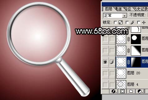本教程介紹金屬放大鏡的制作方法。重點在金屬邊框的制作。需要注意好金屬質感的調節,有的部分用圖層樣式一次不能做好,需要多用幾個圖層來分開做出效果。