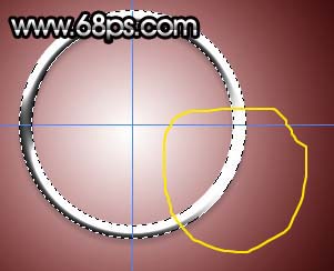 9、新建一個圖層,用橢圓選框工具在圓環的右下角拉一個稍小的正圓如圖13。