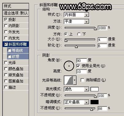 4、雙擊圖層面板圓環圖層的縮略圖調出圖層樣式,參數設置如圖4,5,效果如圖6。