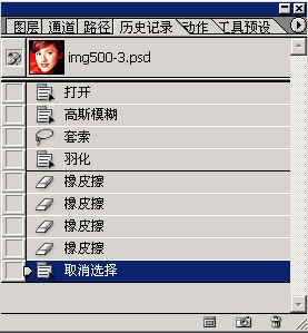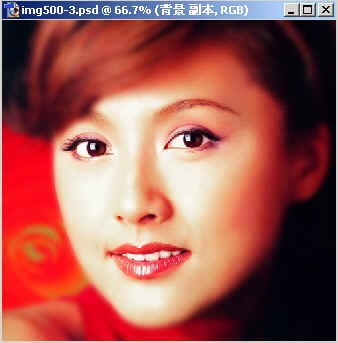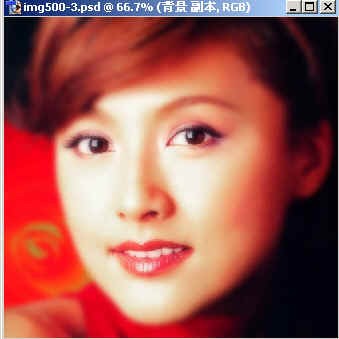 這就是我們用橡皮擦擦拭的結(jié)果。最后,把背景層的小眼睛打開,并取消選區(qū),就可以看到右下圖的樣子了。這個制作特點是臉部還留有一定的朦朧,不像a制作的那么清晰。各有特點吧。