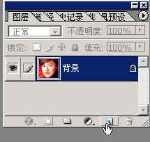 2、看面板圖,現(xiàn)在鼠標(biāo)所指的按鈕是“創(chuàng)建新的圖層”。如果按下這個按鈕,就會在上面創(chuàng)建一個完全透明的,沒有任何畫面的新層。我們現(xiàn)在不建新層。我們來把背景層復(fù)制一個。用鼠標(biāo)點住背景層,把它拖到“創(chuàng)建新的圖層”的按鈕上,再放手,就會在上面產(chǎn)生一個一模一樣的圖層。名稱是“背景副本”。上面的圖層會把下面的畫面蓋住的。在工作區(qū),我們現(xiàn)在看到的是上面一層的畫面。