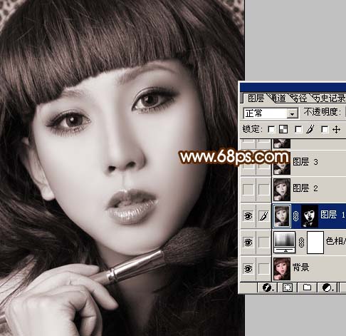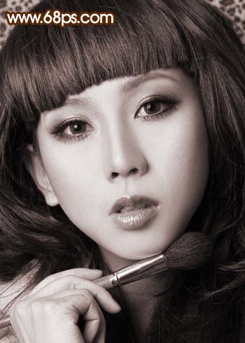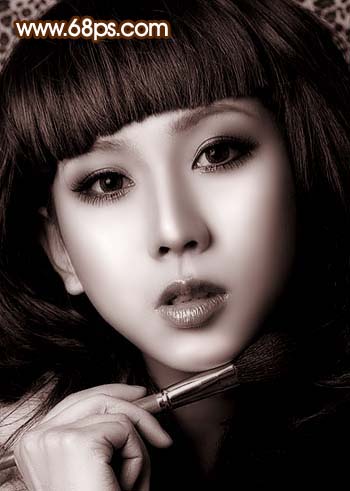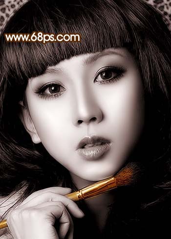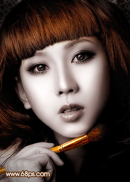 12、新建一個圖層,蓋印圖層,選擇減淡工具把人物臉部高光部分涂亮一點效果如圖17。