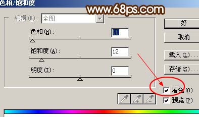 1、打開原圖素材,創(chuàng)建色相/飽和度調(diào)整圖層,參數(shù)設置如圖1,勾選著色選項,效果如圖2。
