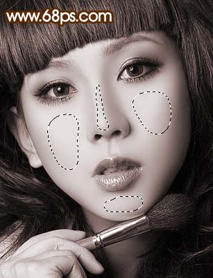 4、新建一個圖層,蓋印圖層,把圖6的選線區(qū)域用減淡工具涂亮一點。減淡工具的曝光度設置為:5%左右,效果如圖7。