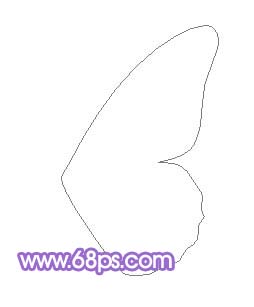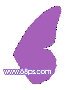 1、新建一個(gè)600 * 450像素的文件,背景暫時(shí)填充白色,然后新建一個(gè)圖層,用鋼筆工具先制作勾出蝴蝶的一邊翅膀如圖1,然后按ctrl + enter轉(zhuǎn)為選區(qū)后填充顏色;#9d5cb1,效果如圖2。