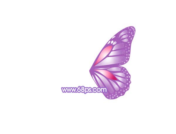 5、新建一個(gè)圖層,同樣的方法制作出其它白色區(qū)塊。邊緣部分點(diǎn)上白色的小點(diǎn)。到這里蝴蝶的一只翅膀就做好了,然后把這些圖層合并,然后復(fù)制一份,對(duì)副本執(zhí)行:編輯 > 變換 > 水平翻轉(zhuǎn),再適當(dāng)調(diào)整角度,制作另一只翅膀效果如圖9。