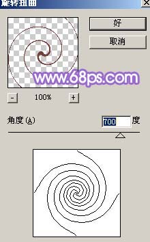 8、用矩形選框工具按住shift鍵款選圖12所示的正方形,然后執(zhí)行:濾鏡 > 扭曲 > 旋轉(zhuǎn)扭曲,參數(shù)設(shè)置如圖13,效果如圖14。