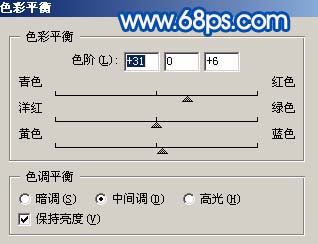 10、創建色彩平衡調整圖層,參數設置如圖20,確定后只保留人物臉部,其它部分用黑色畫筆擦掉,效果如圖21。
