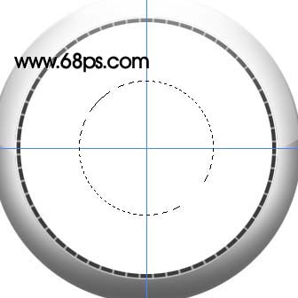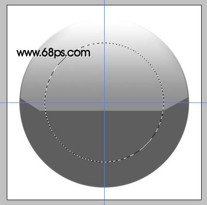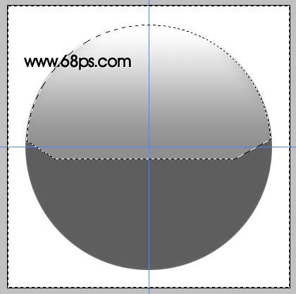 4、新建一個圖層,用橢圓選框工具以交點為中心拉一個稍小的正圓填充白色,然后把圖層不透明度改為:30%,用鋼筆工具由中部位置勾出圖5所示的選區(qū),按delete刪除下半部分如圖6。