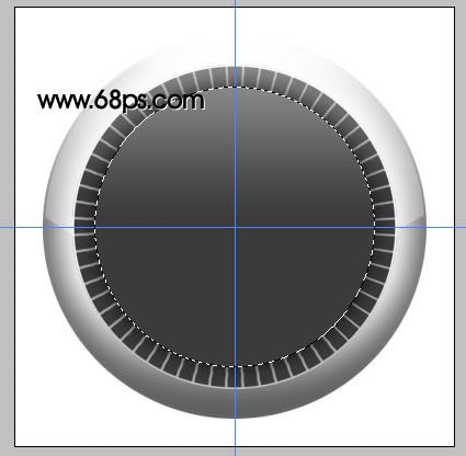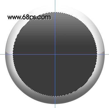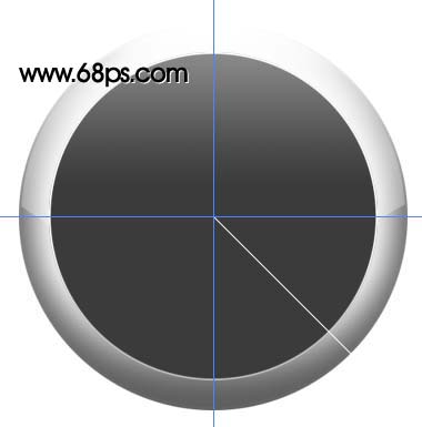 3、新建一個圖層,用橢圓選框工具以交點為中心拉一個把大圓小2像素左右的正圓,然后拉上同樣的徑向漸變色,效果如圖4。