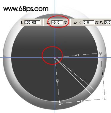 9、按ctrl + j把白線復(fù)制一層,按ctrl + t變形,把中心移到交點位置,角度設(shè)置為-6度,然后按enter確認。接著按ctrl + alt + shift + t不停的復(fù)制直到形成一個圈,再把這些線條圖層合并為一個圖層,刪除不要的部分,效果如圖13。