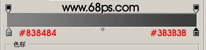 2、新建一個圖層,選擇橢圓選框工具以參照線的交點為中心拉一個較大的正圓,然后選擇漸變工具顏色設(shè)置如圖2,然后由正圓的頂部向下拉出圖3所示的徑向漸變。