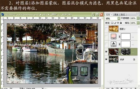 2、對圖層1加上圖層蒙版,圖層混合模式改為“濾色”,用黑色畫筆擦掉不需要操作的部位。