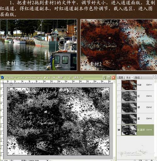 1、打開原圖和下圖所示的素材,把素材拖到原圖上面,調(diào)節(jié)好大小,進(jìn)入通道面板,把紅色通道復(fù)制一層,得到紅通道副本,對紅通道副本適當(dāng)做色階調(diào)節(jié),然后按ctrl點(diǎn)圖層調(diào)出選區(qū),回到圖層面板。