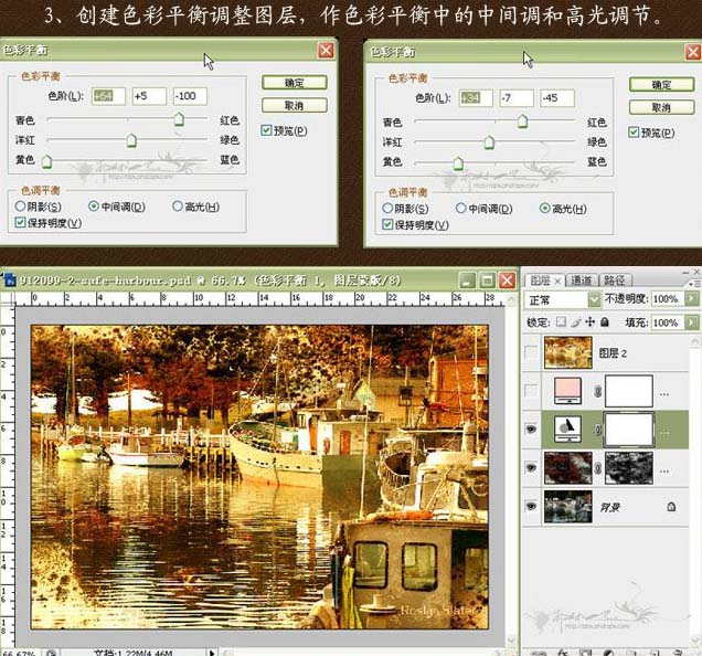 3、創(chuàng)建色彩平衡調(diào)整圖層,做色彩平衡調(diào)整,參數(shù)設(shè)置如下圖。