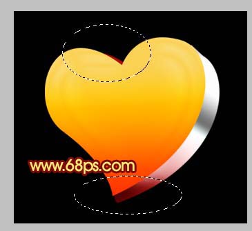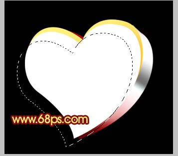 8、按ctrl點主體圖層調(diào)出心形選區(qū),在最上面新建一個圖層,稍微把選區(qū)移下一點如圖14,然后填充白色,不要取消選區(qū),再稍微把選區(qū)移下一點如圖15,然后按delete刪除,按ctrl + d取消選區(qū),加上圖層蒙版用黑色畫筆稍微擦移下過度,如圖16。