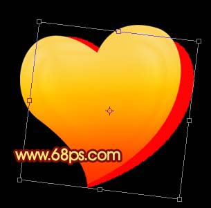 4、按住ctrl點圖層面板主體圖層縮略圖調(diào)出心形選區(qū),在背景圖層上面新建一個圖層填充紅色,再按ctrl + t適當?shù)淖儞Q下角度及位置如圖7,然后按ente確認,效果如圖8。