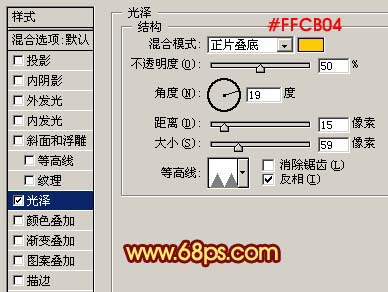 3、雙擊圖層面板主體圖層縮略圖調(diào)出圖層樣式,選擇光澤,參數(shù)設(shè)置如圖5,效果如圖6。